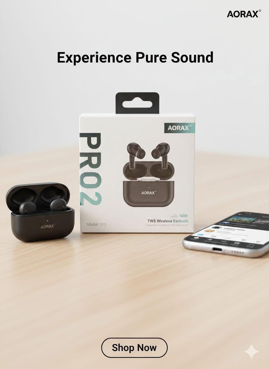 ارتقِ بتجربة الاستماع الخاصة بك مع سماعات AORAX PRO2 اللاسلكية المصممة لتمنحك أداءً صوتياً واضحاً وقوياً طوال اليوم.